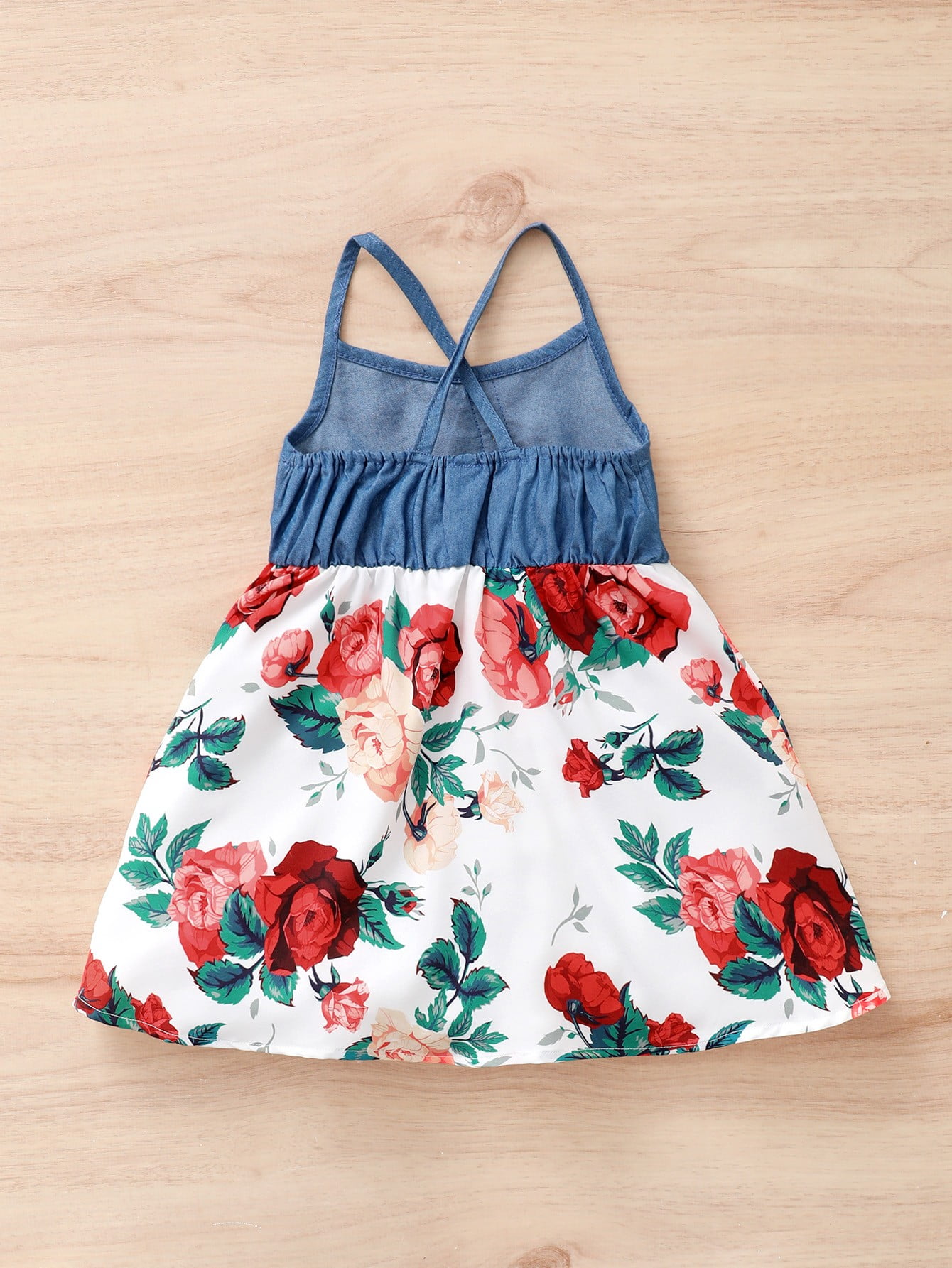 Infant Baby Girl Dress Baby Girl S Summer Denim Strap Floral Print Dress 12 18 Months Walmart Com